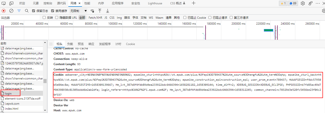 找到cookie,将set-cookie与cookie做对比,相同的数据就是SESSIONID。