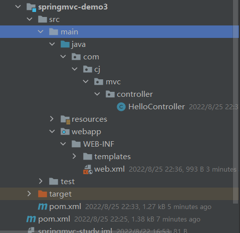 <?xml version="1.0" encoding="UTF-8"?> <beans xmlns="http://www.springframework.org/schema/beans" xmlns:xsi="http://www.w3.org/2001/XMLSchema-instance" xmlns:context="http://www.springframework.org/schema/context" xsi:schemaLocation="http://www.springframework.org/schema/beans http://www.springframework.org/schema/beans/spring-beans.xsd http://www.springframework.org/schema/context http://www.springframework.org/schema/context/spring-context.xsd"> <context:component-scan base-package="com.cj.mvc"></context:component-scan> <!-- 配置Thymeleaf视图解析器 --> <bean id="viewResolver" class="org.thymeleaf.spring5.view.ThymeleafViewResolver"> <property name="order" value="1"/> <property name="characterEncoding" value="UTF-8"/> <property name="templateEngine"> <bean class="org.thymeleaf.spring5.SpringTemplateEngine"> <property name="templateResolver"> <bean class="org.thymeleaf.spring5.templateresolver.SpringResourceTemplateResolver"> <!-- 视图前缀 --> <property name="prefix" value="/WEB-INF/templates/"/> <!-- 视图后缀 --> <property name="suffix" value=".html"/> <property name="templateMode" value="HTML5"/> <property name="characterEncoding" value="UTF-8" /> </bean> </property> </bean> </property> </bean> </beans>