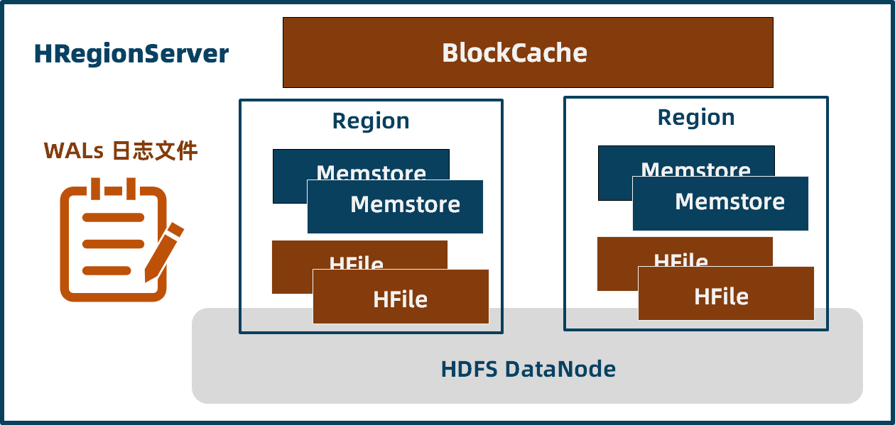 WALs 即 Write Ahead Log,在早期版本中称为 HLog,它是 HDFS 上的一个文件,所有写操作都会先保证将数据写入这个 Log 文件后(类似于 Redis 的 AOF 文件),才会真正更新 MemStore(写缓存),最后写入 HFile 文件中。