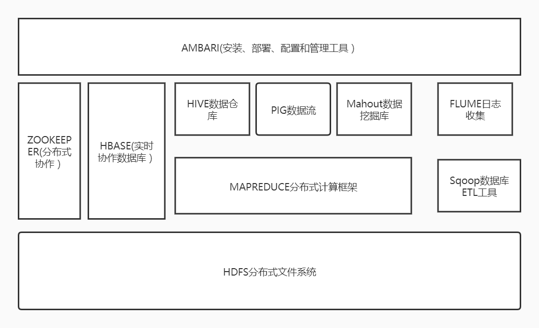 (3)hive(基于hadoop的数据仓库)由Facebook开源,最初用于解决海量结构化的日志数据统计问题。hive定于了一种类似sql的查询语言(hql)将sql转化为mapreduce任务在hadoop上执行;
