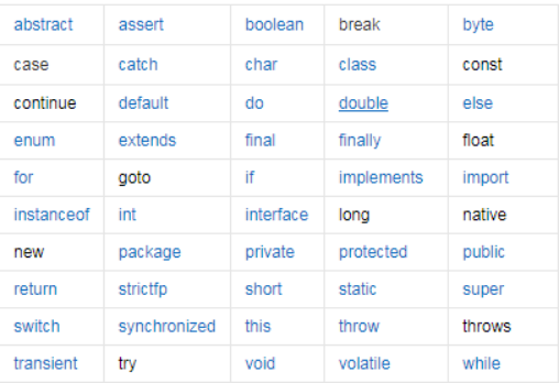 3.有两个特殊的关键字,goto、const,现在不使用,以 后是否使用,不确定,称这两个关键字为“保留字”。