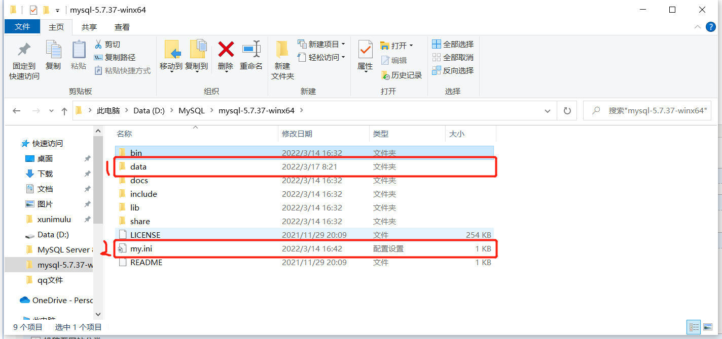 在此目录里面新建一个data文件夹 在建立一个my.ini(记得打开扩展名)
