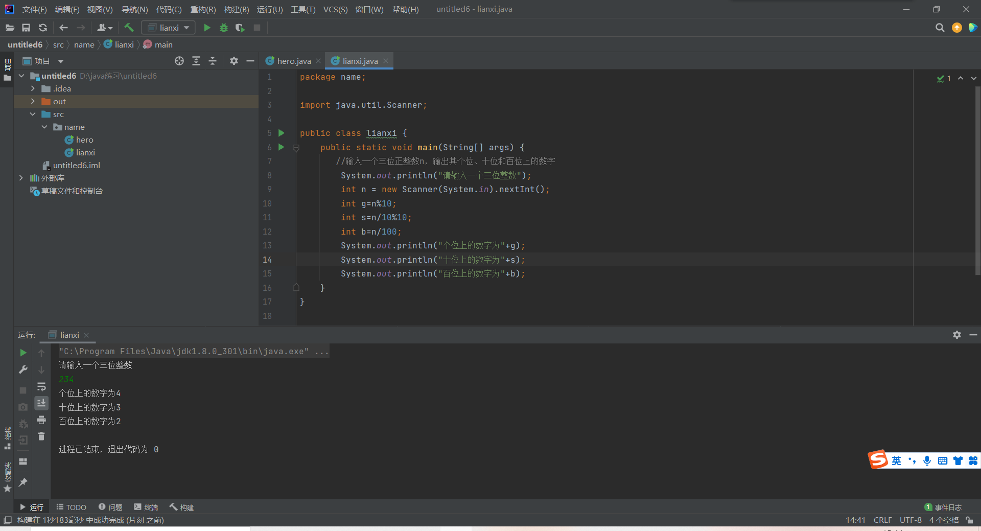3、输入一个三位正整数n,输出其个位、十位和百位上的数字。