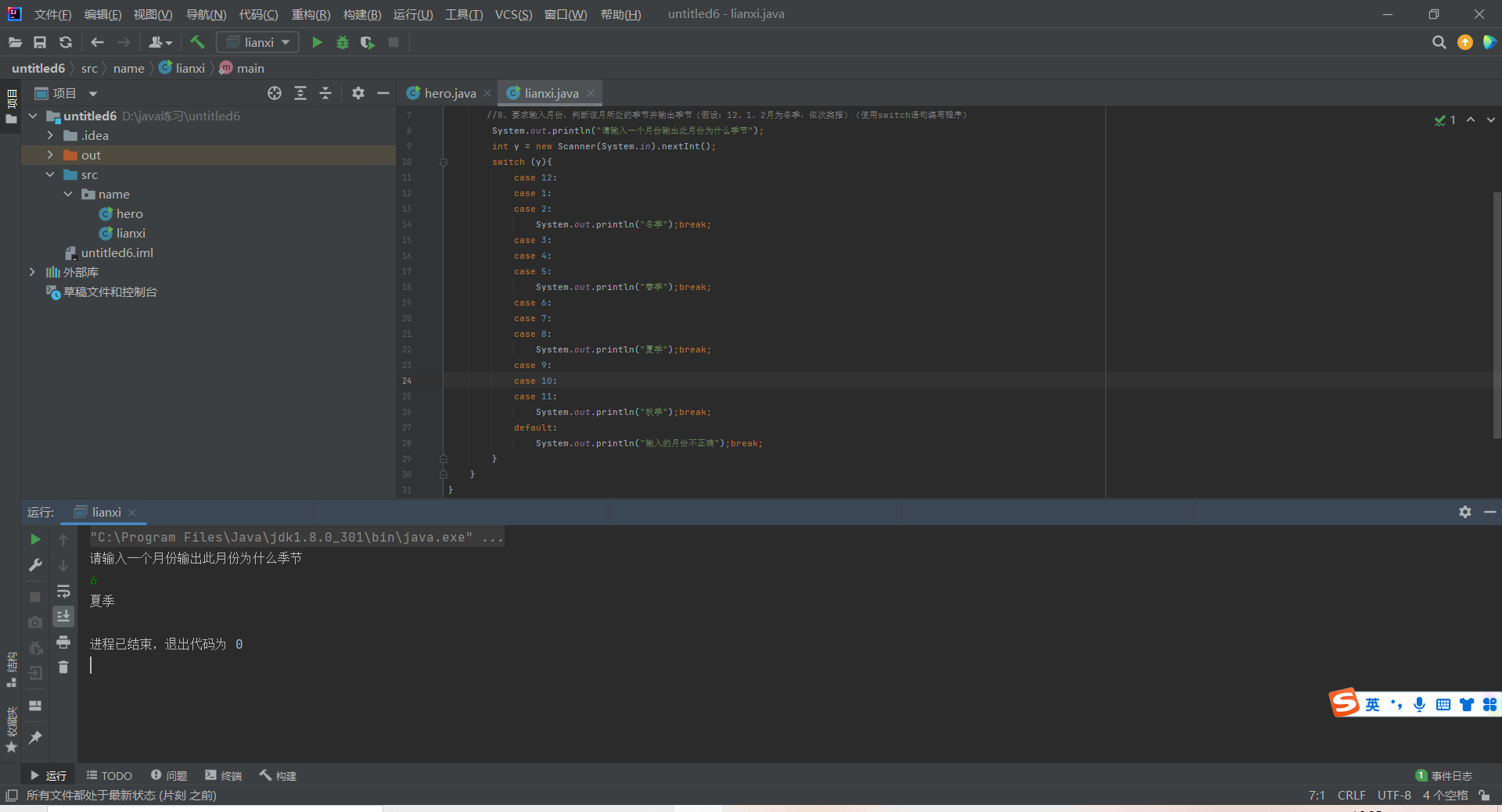 8、要求输入月份,判断该月所处的季节并输出季节(假设:12、1、2月为冬季,依次类推)(使用switch语句编写程序)