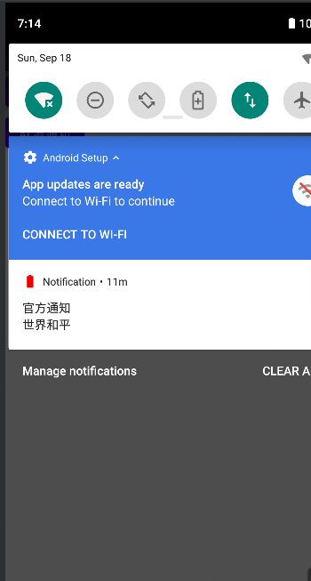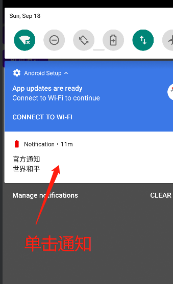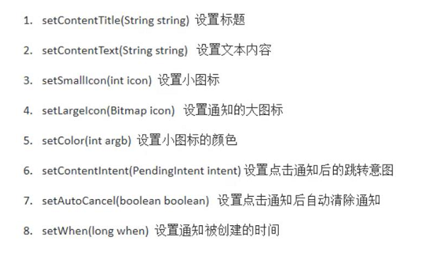 public class MainActivity extends AppCompatActivity { private NotificationManager manager; private Object Notification; private Notification notification; @Override protected void onCreate(Bundle savedInstanceState) { super.onCreate(savedInstanceState); setContentView(R.layout.activity_main); manager = (NotificationManager) getSystemService(NOTIFICATION_SERVICE); if (Build.VERSION.SDK_INT>=Build.VERSION_CODES.O){ NotificationChannel channel = new NotificationChannel("leo", "测试通知", NotificationManager.IMPORTANCE_HIGH); manager.createNotificationChannel(channel); } Intent intent = new Intent(this,NotificationActivity.class); PendingIntent pendingIntent = PendingIntent.getActivity(this, 0, intent, 0); notification = new NotificationCompat.Builder(this,"leo") .setContentTitle("官方通知") .setContentText("世界和平") .setSmallIcon(R.drawable.ic_baseline_battery_full_24) .setColor(Color.parseColor("#ff0000")) .setContentIntent(pendingIntent) .setAutoCancel(true) .build(); } public void sendNotification(View view) { } public void cacelNotification(View view){ }
