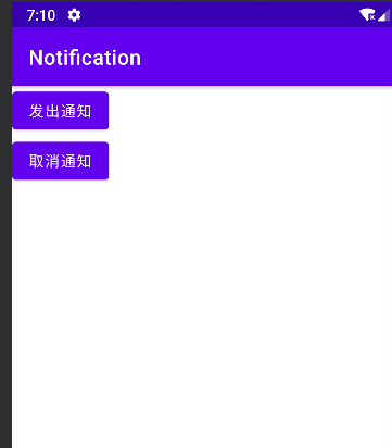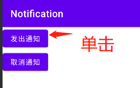 <Button android:layout_width="wrap_content" android:layout_height="wrap_content" android:onClick="sendNotification" android:text="发出通知" /> <Button android:layout_width="wrap_content" android:layout_height="wrap_content" android:onClick="cacelNotification" android:text="取消通知"/>