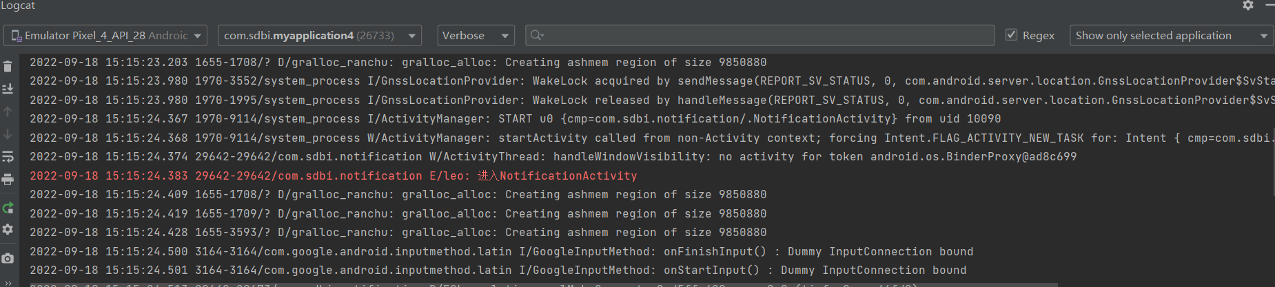 protected void onCreate(@Nullable Bundle savedInstanceState) { super.onCreate(savedInstanceState); Log.e("leo", "进入NotificationActivity" ); }