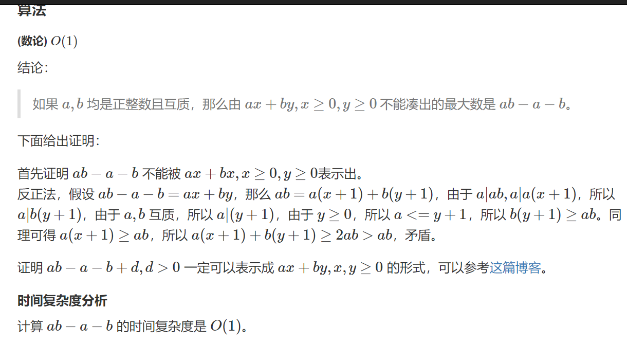 就是说(x,y)的最大公约数如果大于1,也就是不互质,那xy的任意组合数一定是这个最大公约数的倍数