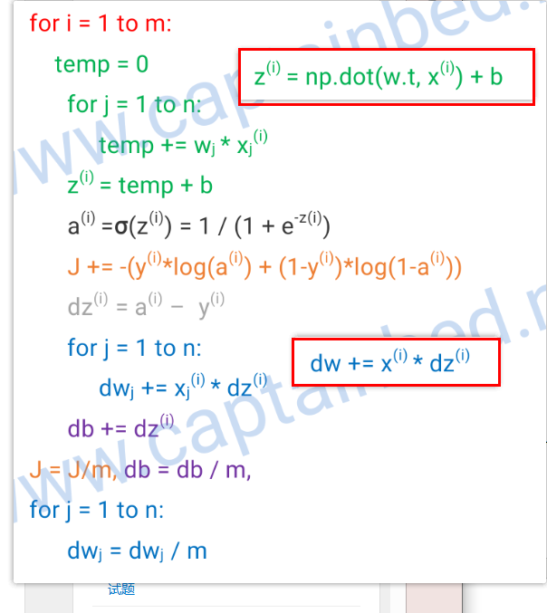w之前是一个列向量,转置后成为行向量。x(i) 列向量 。