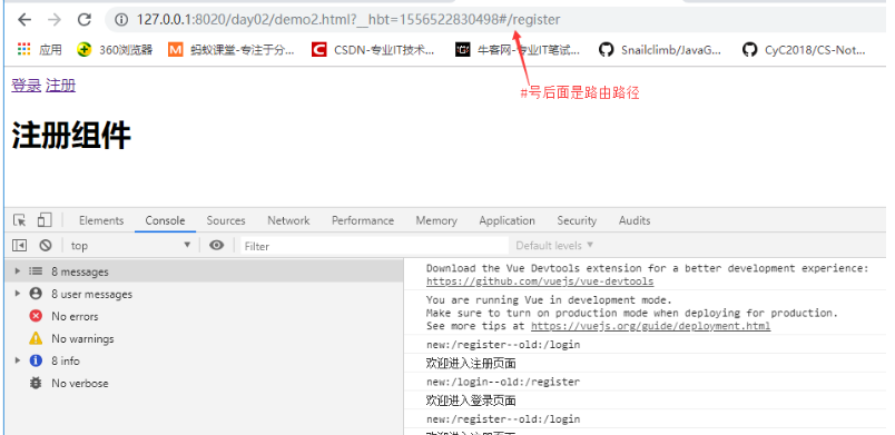 目的:我们点击不同的按钮就会在本页面进行不同的路由,路由地址会产生变化,这个时候我们可以对路由地址做监听