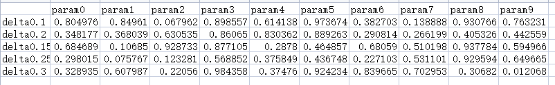 首先是问题描述,有一个形如dict = {'delta1':[param11, param12, param13, ...], 'delta2':[param21, param22, param23, ...], 'delta3':[param31, param32, param33, ...], ... ,'deltan':[paramn1, paramn2, paramn3, ...]}的数据需要保存到本地,然后我想将其保存为如下的表格