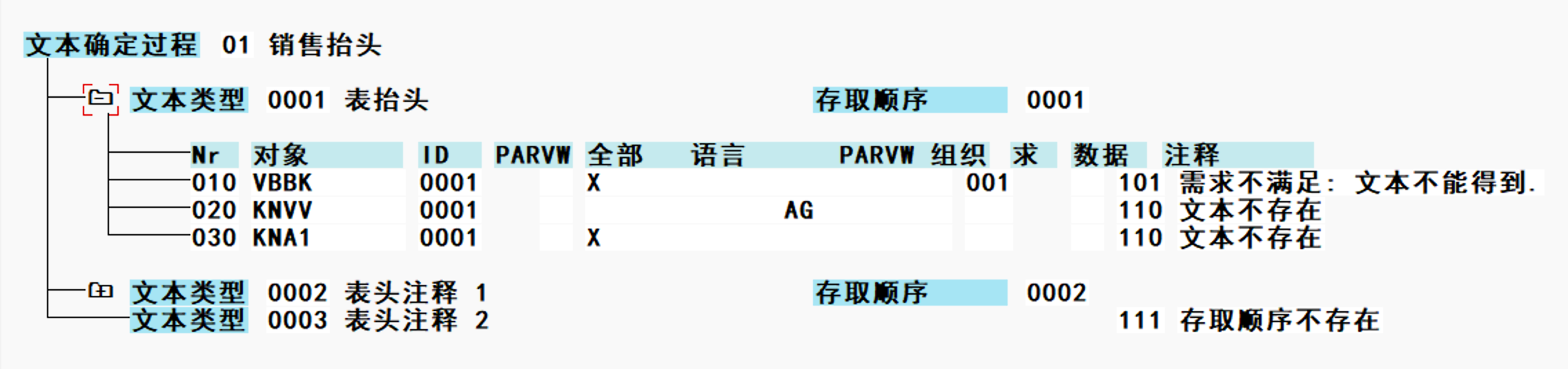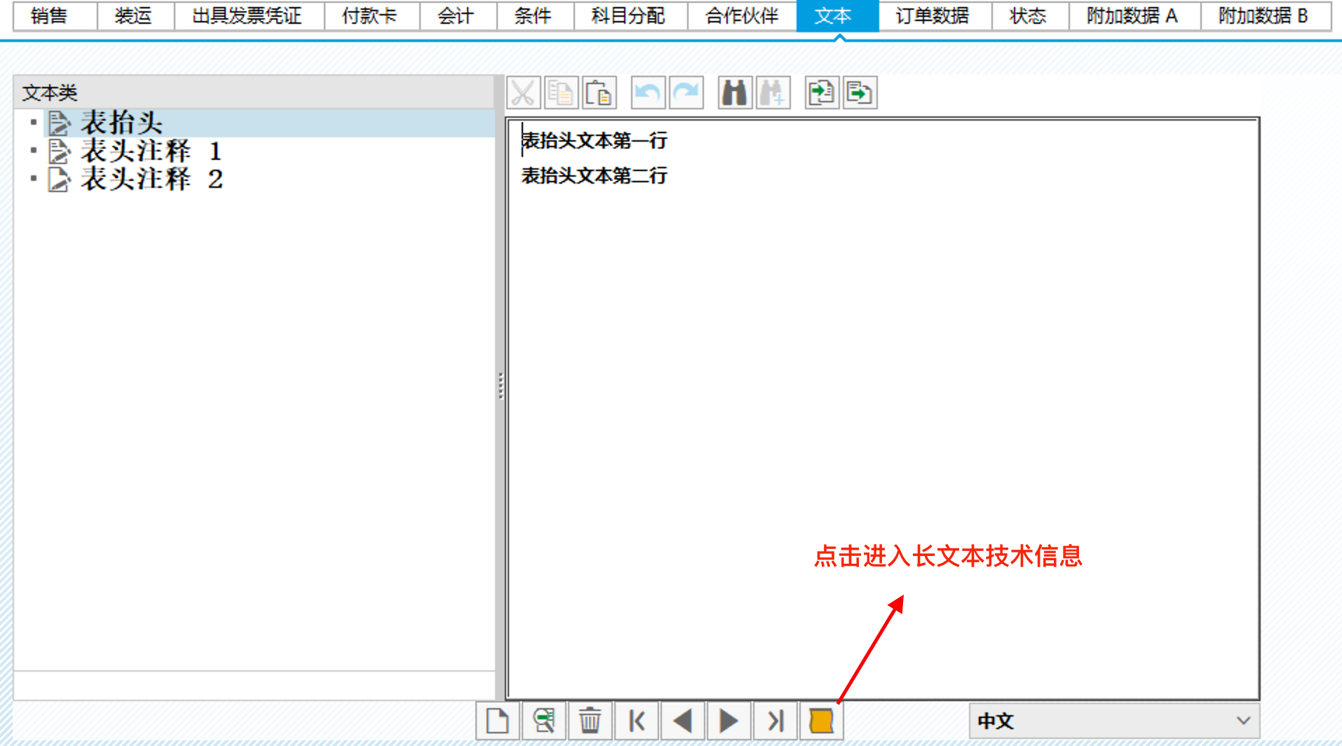 以销售订单VA03为例,抬头文本处即可查看长文本具体信息,0001取表抬头,0002取表头注释1。