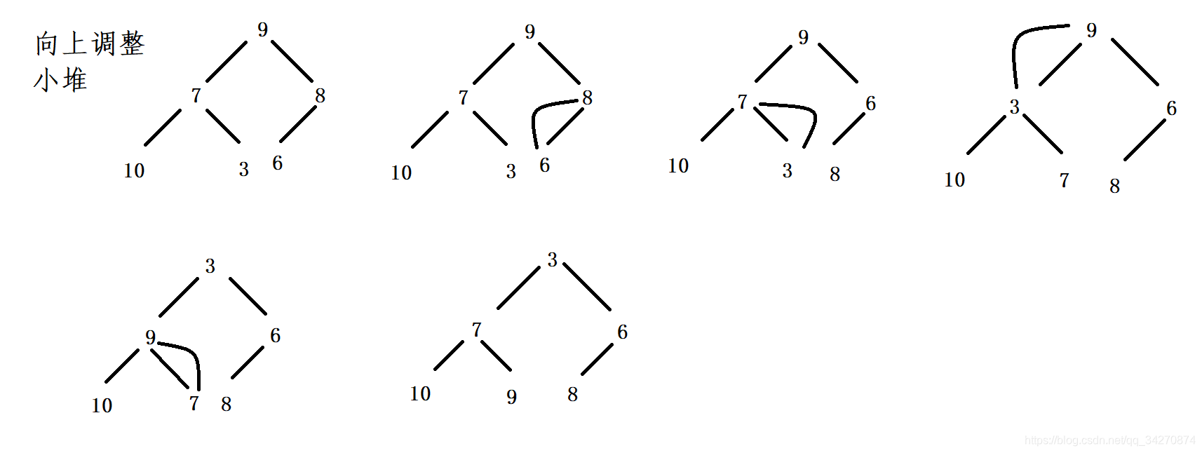 如果cur比parent大,满足小堆的规则,不需要交换,调整结束。