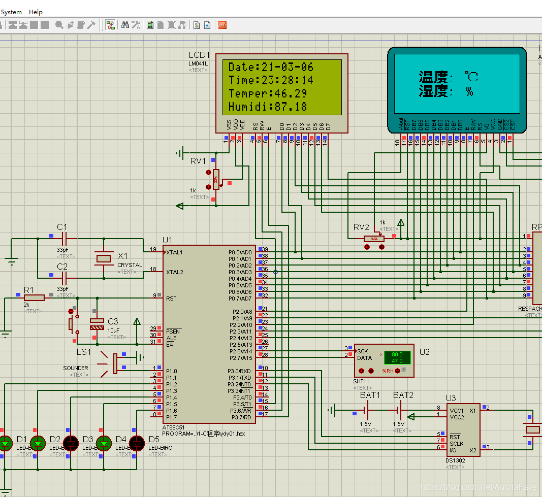 关键词:AT89C51、SHT11、LCD、DS1302、温湿度控制