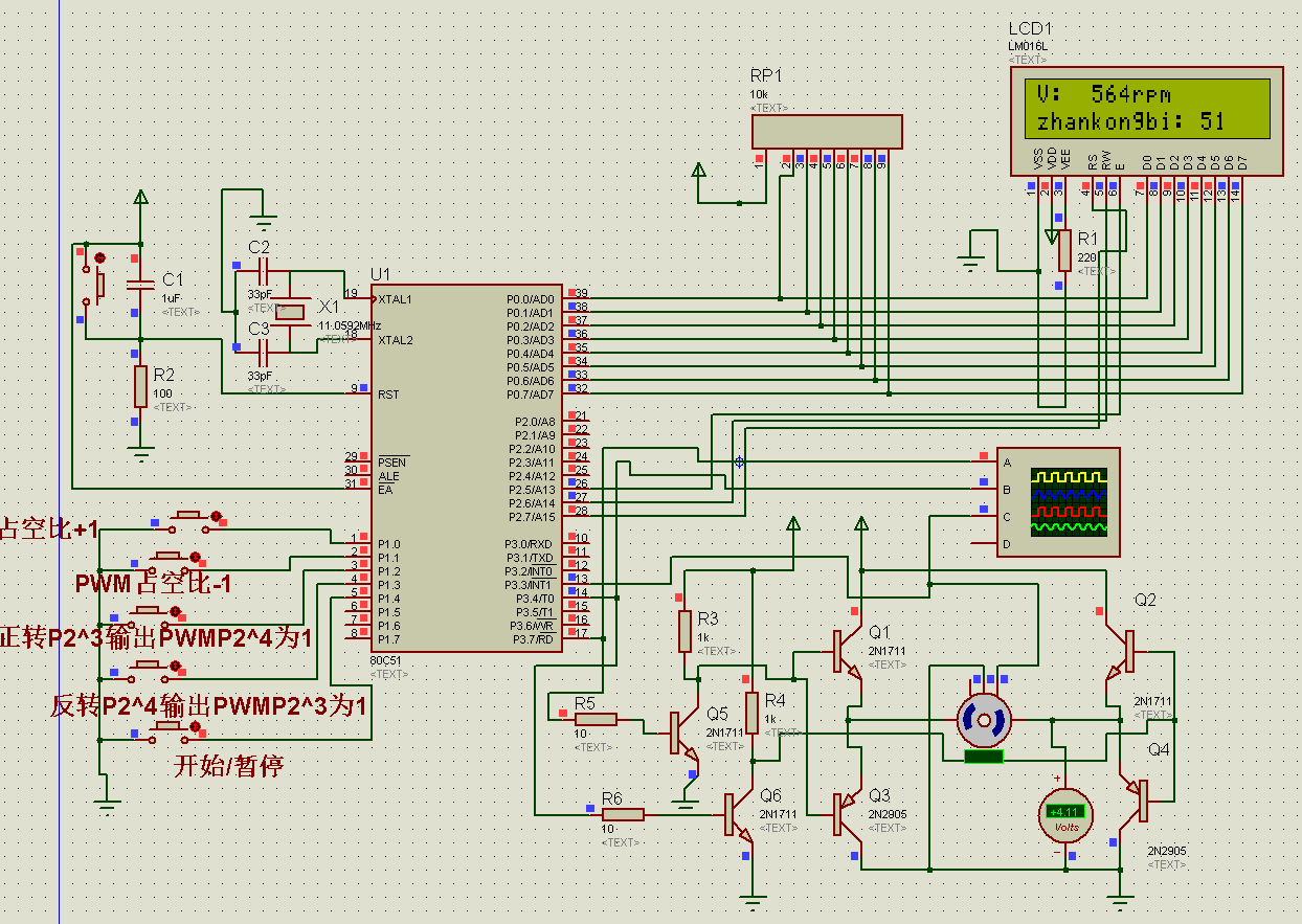 sbit out=P3^4; //PWM输出用于正传