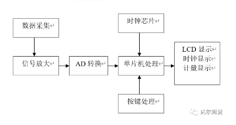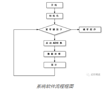当被称物体放置在平台上时,压力传感器产生力-电效应,将物体的压力转换成与被称物体压力成一定函数关系的电信号。该电信号先通过前端信号处理电路,然后经过A/D转换电路转换成数字信号送入到主控电路的单片机中,单片机通过扫描键盘和各种功能开关,根据键盘输入内容和各种功能开关的状态进行判断、分析和控制,来完成各种运算和显示功能。