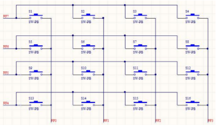 由于使用的是STM32最小核心板,所以可以自由的添加外设。其中4x4按键分别使用了MCU的8个IO口: