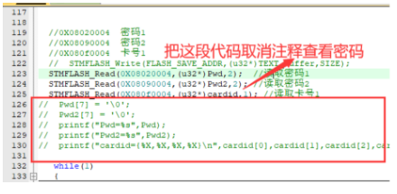 STMFLASH_Read(0X080f0004,(u32*)cardid,1); //读取卡号1