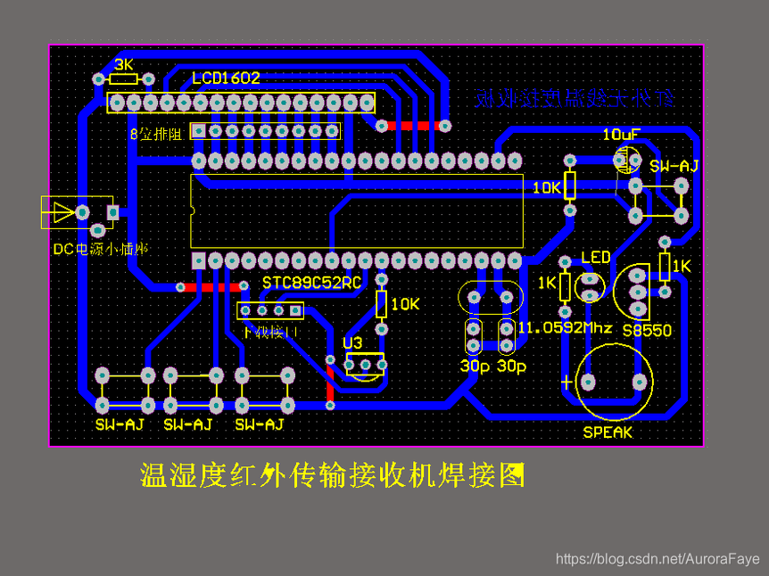 发射机组成:STC89C52RC单片机+DHT11温湿度传感器+红外发射管。