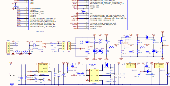 3.室内机同样接一个温度传感器NTC 10K3435,湿度传感器HR202和PM2.5传感器,用于采集温湿度和PM2.5,外接一个RF433接收模块用于接收数据;