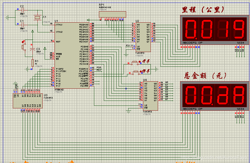 通过编程实现出租车里程和金额的显示,加仿真电路和程序,以及论文资料,可以用作课设或毕业设计