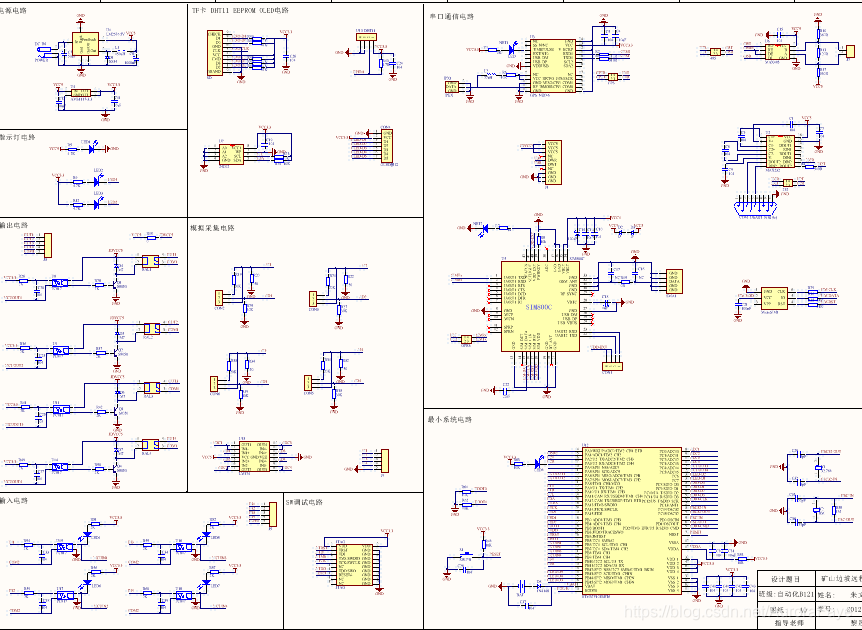 - 矿山边坡远程监控系统硬件设计主要由电源电路,最小系统电路、传感器采集电路、数据存储电路、通信电路、人机交互电路、GPS定位电路等七部分组成。传感器数据采集模块用于矿山边坡周边环境信息的模拟量信号作为STM32主控制器的输入信号,数据存储模块用于将采集到环境信息以文件的形式保存在TF卡中,通信模块将实现远程监测控制功能,人机交互模块实现数据实时直观显示,此外具有操作性,方便工作人员现场调试、信息交流等工作。