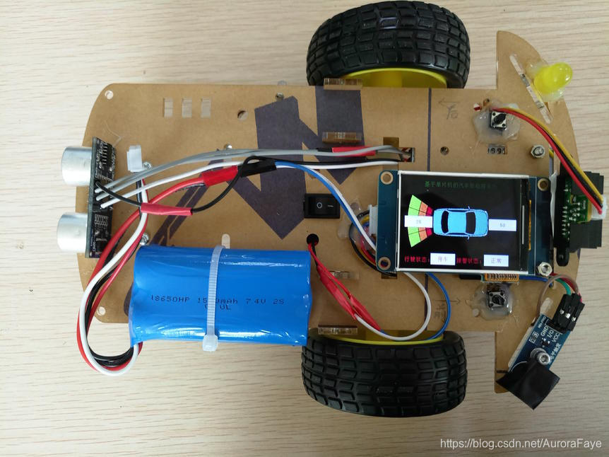 (3)该系统由测距模块、控制计算单元、显示单元、报警单元、执行单元等组成。其中测距模块包括汽车前进时工作的激光测距模块和汽车倒车时工作的超声波测距模块。两者分别通过各自的通讯电路与控制单元相连,可在汽车前进后退等多种工况对汽车周边障碍物进行全方位监测,并把汽车与障碍物距离传递至控制单元,控制单元通过连接的执行单元,报警单元等进行声光报警,主动制动等防碰撞功能的执行.