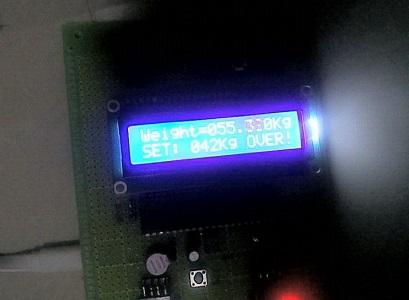 在图中,从右到左,按键K1为去皮功能,K2和K3是修改报警参数值。K2加,K3减。当所测重量大于设置的报警值时,P3.0驱动继电器工作,继电器可以接报警装置等。