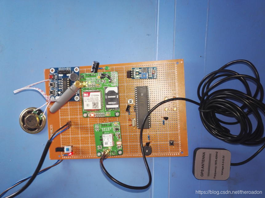 4、通过GPS模块实现经纬度检测,通过短信模块SIM900A实现短信发送,手机发送短信给设备:JW。设备回发给手机经纬度信息。