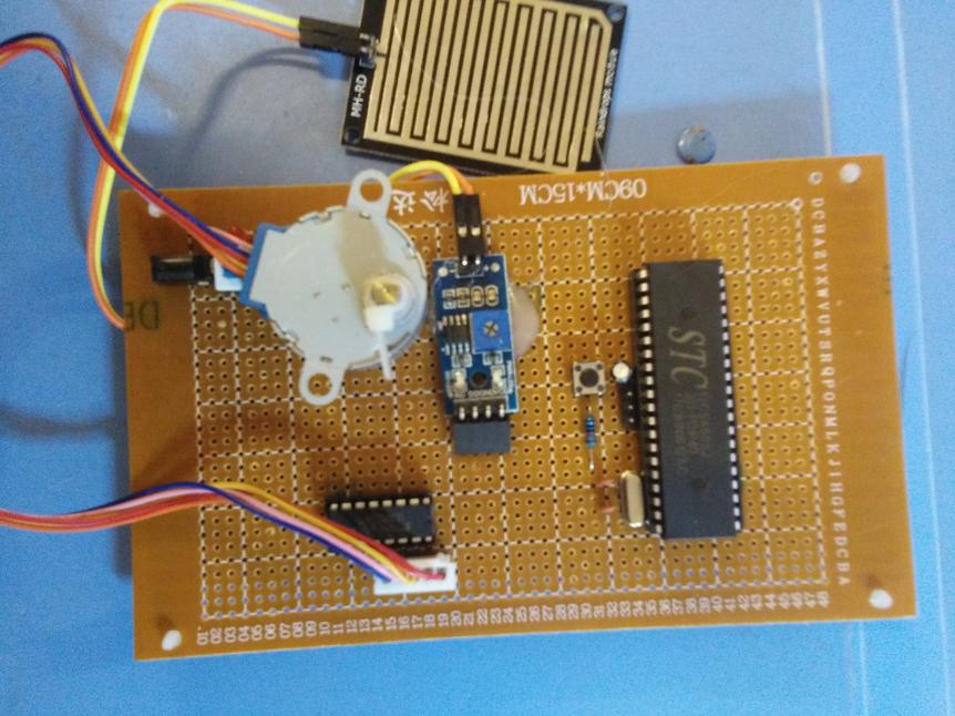 本设计由STC12C5A60S2单片机电路+步进电机驱动电路+雨滴传感器电路+电源电路组成。