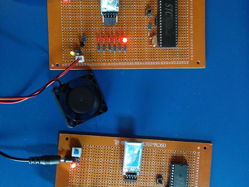 从机由STC89C52单片机电路+风扇控制电路+LED指示灯电路+蓝牙从机电路+电源电路组成。