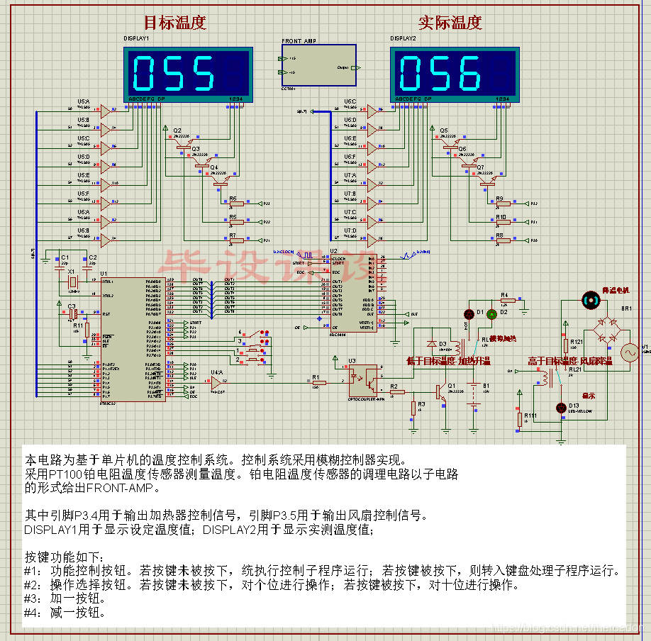 020【毕设课设】基于单片机模糊算法温度控制系统设计,本电路为基于单片机的温度控制系统。控制系统采用模糊控制器实现。
