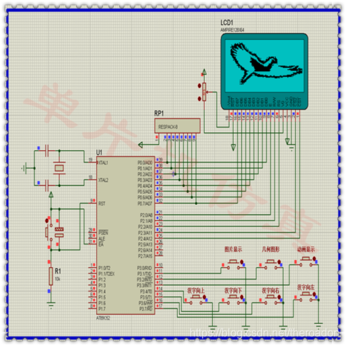 【毕业设计】基于单片机多功能LCD显示设计仿真,主要实现了LCD12864的液晶多功能显示,包括图片形式,几何显示,动画显示,汉字向上移动,汉字向下移动,汉字向左移动,汉字向右移动。完美的展现了液晶多功能显示。资料包从主页下载。