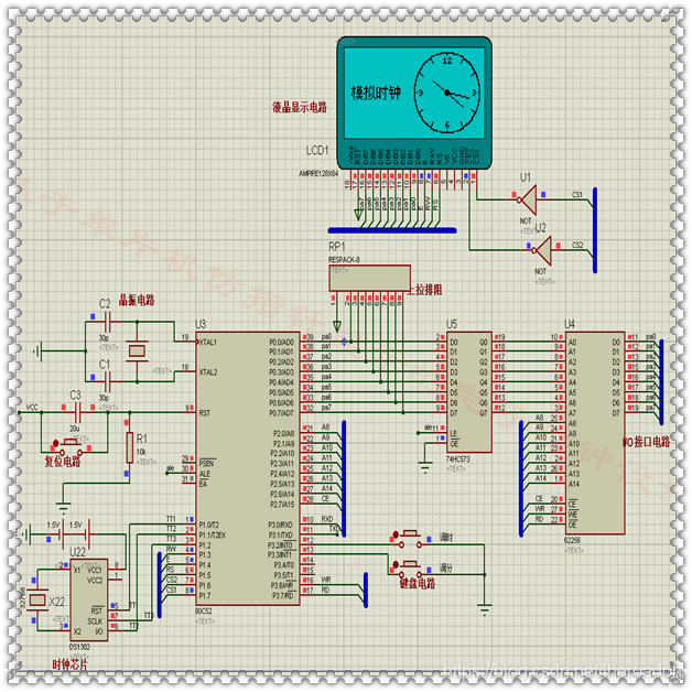 【毕业设计】基于单片机仿指针显示的电子时钟设计,用单片机模拟指针式电子时钟,毕业设计和课程设计课题专用。附带仿真图、C程序,原理图pdf等等资料,非常完善,可通过主页进行下载。