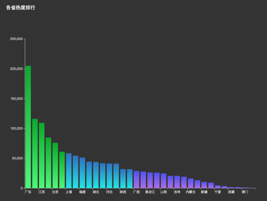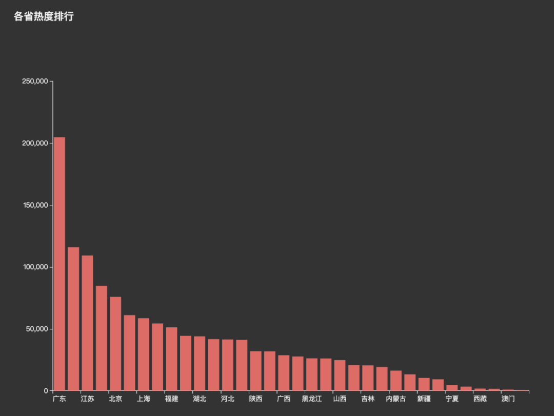 数据采用的是昨天「NBA」在各个省份的热度(百度指数)。