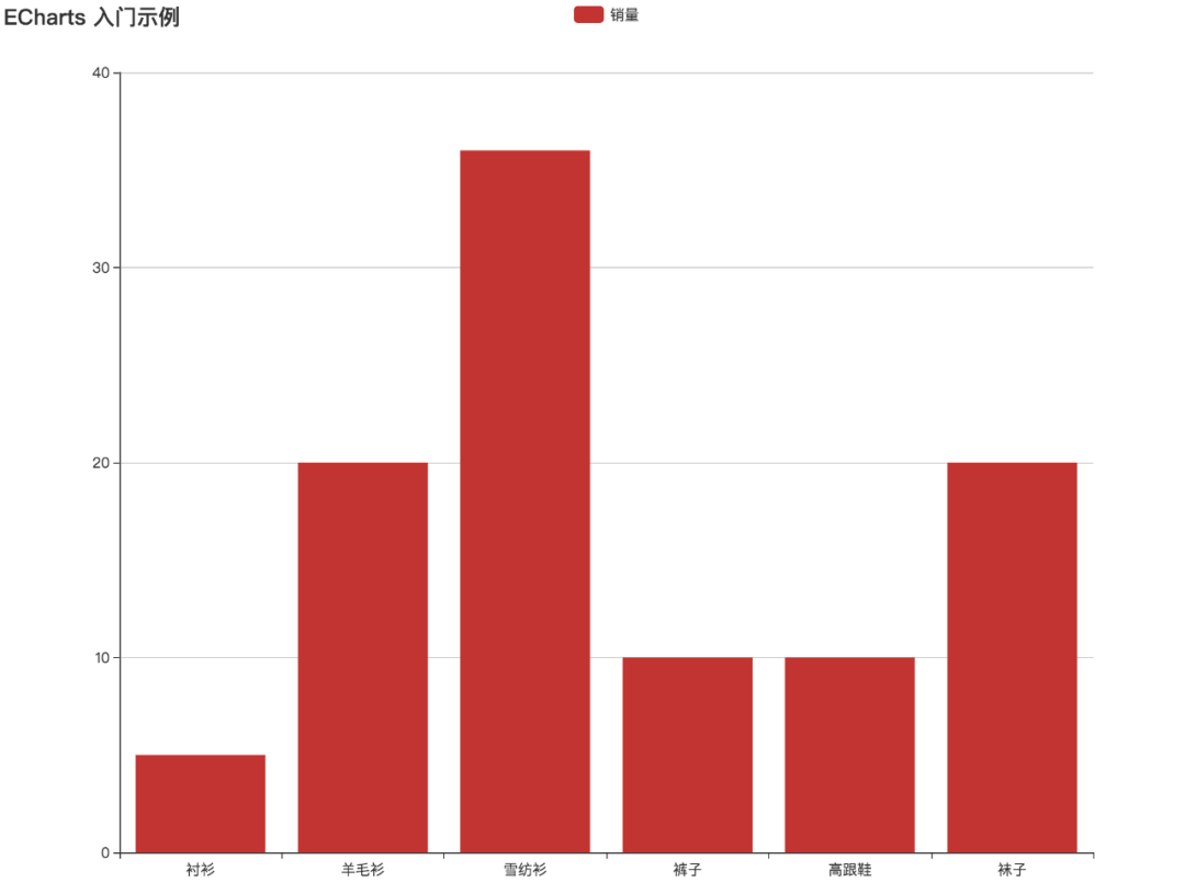 data: ["衬衫", "羊毛衫", "雪纺衫", "裤子", "高跟鞋", "袜子"],
