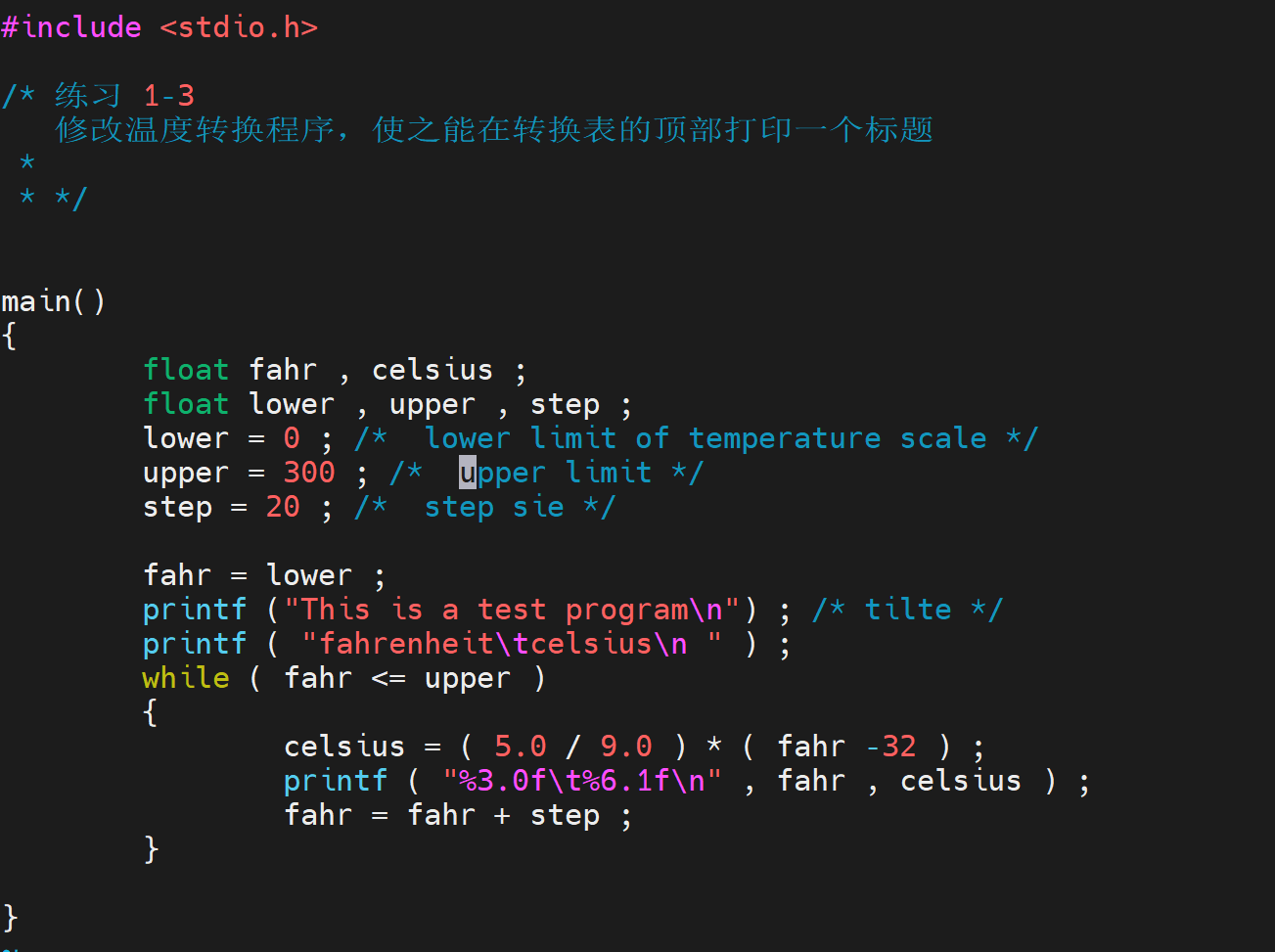 C语言1.4小练习-修改温度转换程序,使之能在转换表的顶部打印一个标题