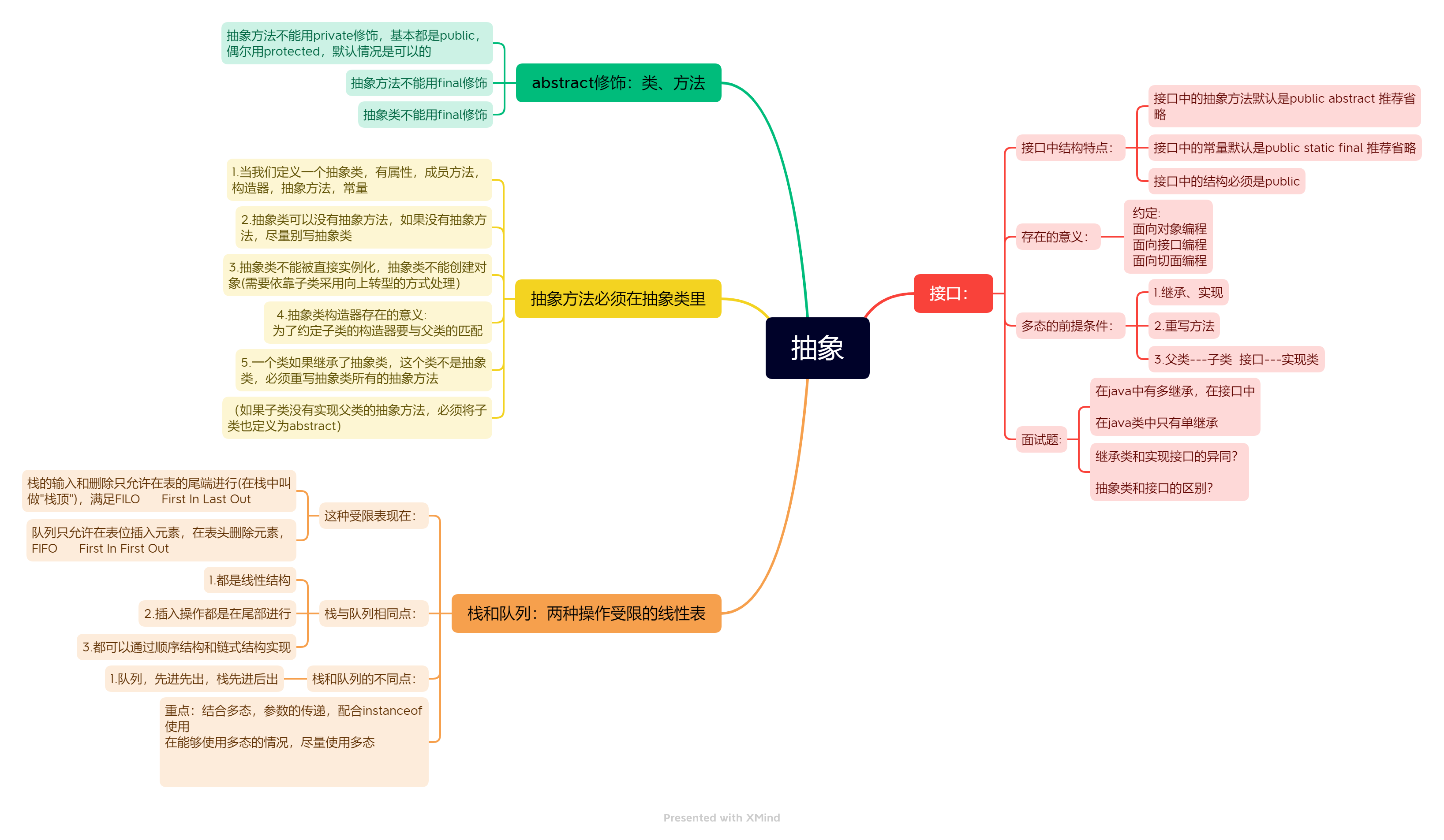 只能定义抽象方法,不能有属性,可以有默认方法和静态方法,静态常量