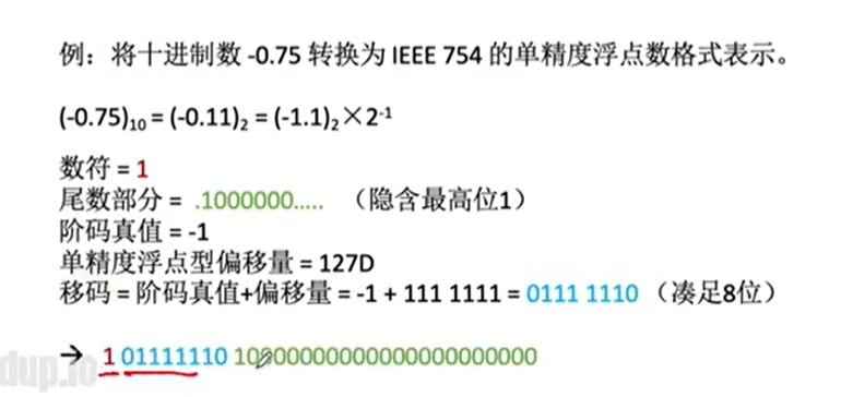 阶码用移码表示。移码=真值+偏置值 IEEE754标准规定偏置值等于2n-1,不是通常的2n。
