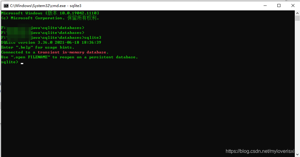 4. 打开命令行窗口(cmd),进入c盘目录,输入“sqlite3”,将显示SQLite版本即表示安装成功。