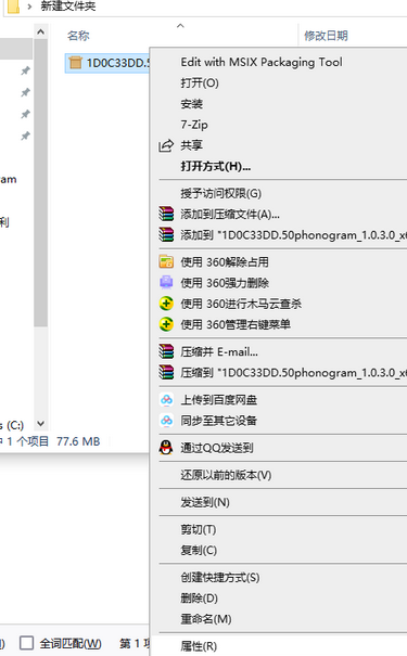 1)、单击有签名的.msix 文件》属性》