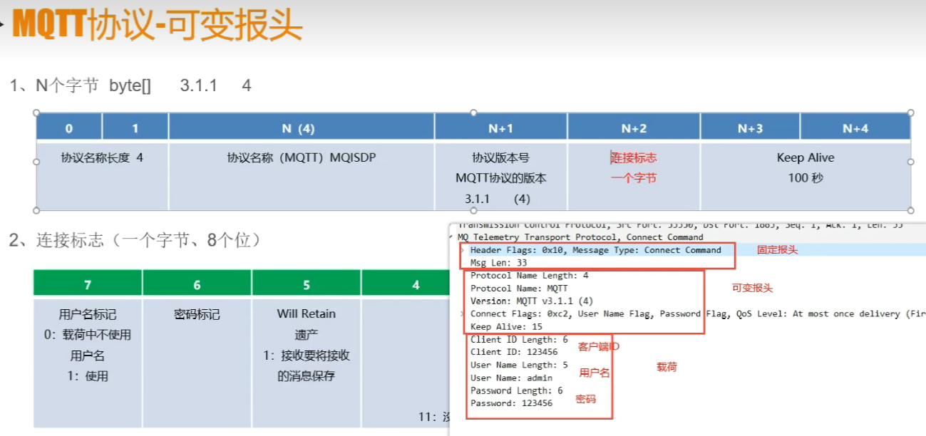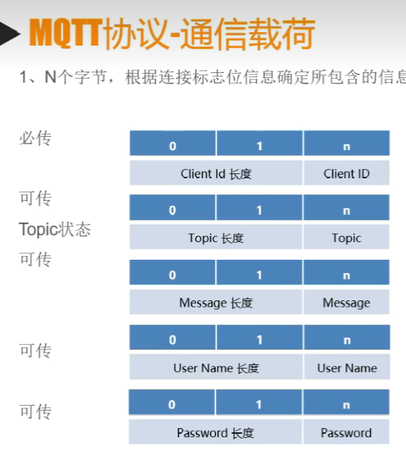 MQTT控制报文结构 = 固定报头(2字节) + 可变报头(N字节 可有可无) + 有效载荷( 动态可变 可有可无)