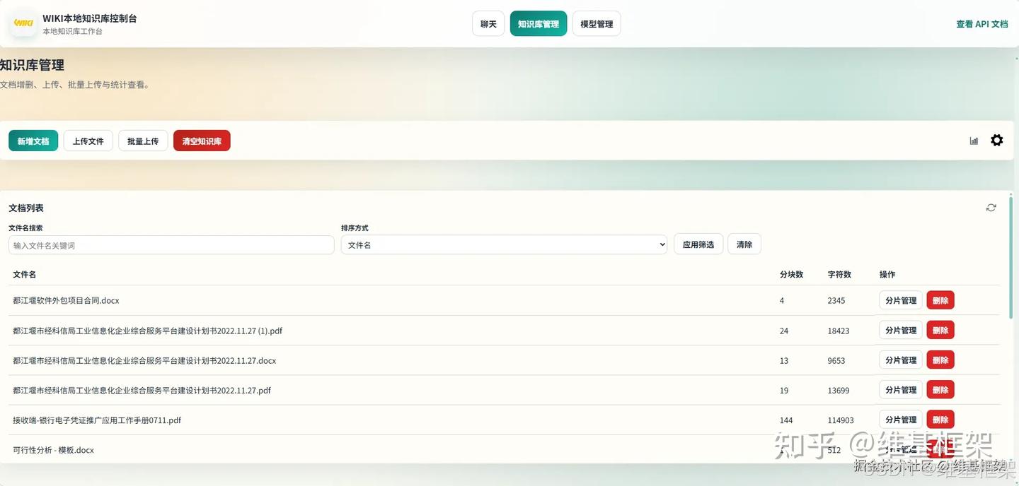 WIKI 知识库是一个架构清晰、模块解耦、私有化友好的 RAG 系统。其核心设计思路是:
