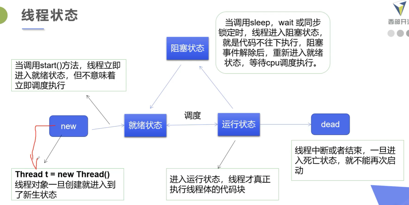 在一个进程中,如果开辟了多个线程,线程的运行是由调度器(cpu)安排调度的,调度器是与操作系统紧密相关的,先后顺序是不能人为干预的