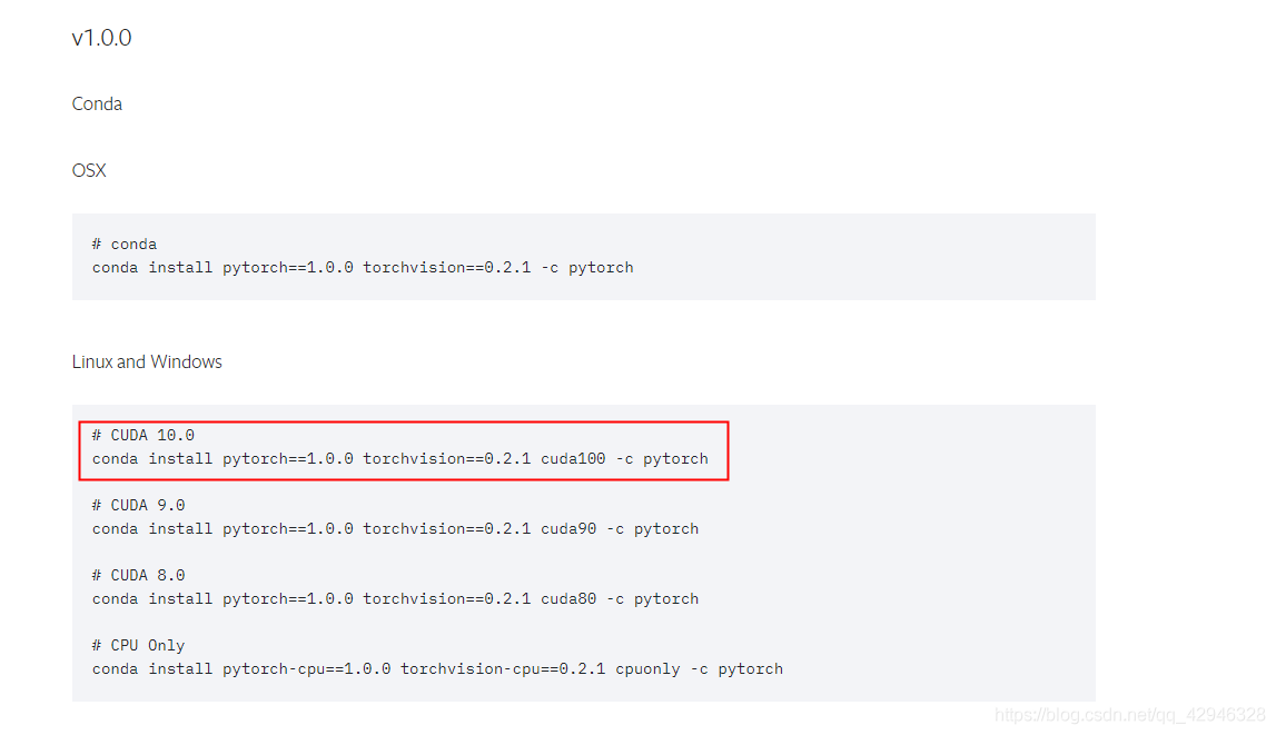 conda install pytorch==1.0.0 torchvision==0.2.1 cuda100 -c pytorch