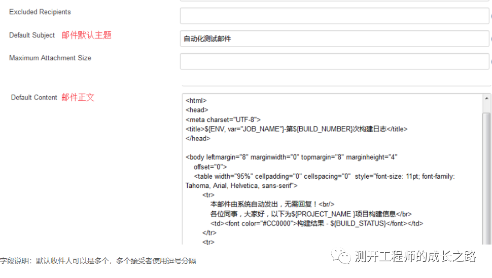 <!DOCTYPE html> <html> <head> <meta charset="UTF-8"> <title>${ENV, var="JOB_NAME"}-第${BUILD_NUMBER}次构建日志</title> </head> <body leftmargin="8" marginwidth="0" topmargin="8" marginheight="4" offset="0"> <table class="table" width="1000" border="1" cellspacing="0" cellpadding="5"> <caption align="center"><h3>项目构建信息</h3></caption> <thead> <tr> <th>构建项目-<b>${PROJECT_NAME}</b></th> </tr> </thead> <tbody> <tr> <td><font color="#CC0000"><b>构建结果 - ${BUILD_STATUS}</b></font></td> </tr> <tr> <td>测试数量-${TEST_COUNTS, var="total"}</td> </tr> </tbody> <tr> 本邮件由系统自动发出,无需回复!<br/> 各位同事,大家好,以下为${PROJECT_NAME}项目构建信息</br> </tr> <tr> <td><br/> <b><font color="#0B610B">构建报告</font></b> <hr size="2" width="100%" align="center"/> <ul> <li>构建报告:<a href="${BUILD_URL}allure/">${PROJECT_URL}allure/</li> </ul> </td> </tr> <tr> <td><br/> <b><font color="#0B610B">构建信息</font></b> <hr size="2" width="100%" align="center"/> <ul> <li>项目名称: ${PROJECT_NAME}</li> <li>构建编号: 第${BUILD_NUMBER}次构建</li> <li>触发原因:${CAUSE}</li> <li>构建状态:${BUILD_STATUS}</li> <li>构建日志:<a href="${BUILD_URL}console">${BUILD_URL}console</a></li> <li>构建 Url: <a href="${BUILD_URL}">${BUILD_URL}</a></li> <li>工作目录: <a href="${PROJECT_URL}ws">${PROJECT_URL}ws</a></li> <li>项目 Url: <a href="${PROJECT_URL}">${PROJECT_URL}</a></li> </ul> </td> </tr> <tr> <td> <b><font color="#0B610B">构建详细信息</font></b> <hr size="2" width="100%" align="center"/> <ul> <li>BRANCH_NAME: ${BRANCH_NAME}</li> <li>CHANGE_ID: ${CHANGE_ID}</li> <li>CHANGE_URL: ${CHANGE_URL}</li> <li>CHANGE_TITLE: ${CHANGE_TITLE}</li> <li>CHANGE_AUTHOR: ${CHANGE_AUTHOR}</li> <li>CHANGE_AUTHOR_DISPLAY_NAME: ${CHANGE_AUTHOR_DISPLAY_NAME}</li> <li>CHANGE_AUTHOR_EMAIL: ${CHANGE_AUTHOR_EMAIL}</li> <li>CHANGE_TARGET: ${CHANGE_TARGET}</li> <li>BUILD_NUMBER: ${BUILD_NUMBER}</li> <li>BUILD_DISPLAY_NAME: ${BUILD_DISPLAY_NAME}</li> <li>BUILD_ID: ${BUILD_ID}</li> <li>JOB_NAME: ${JOB_NAME}</li> <li>JOB_BASE_NAME: ${JOB_BASE_NAME}</li> <li>BUILD_TAG: ${BUILD_TAG}</li> <li>EXECUTOR_NUMBER: ${EXECUTOR_NUMBER}</li> <li>NODE_NAME: ${NODE_NAME}</li> <li>NODE_LABELS: ${NODE_LABELS}</li> <li>WORKSPACE: ${WORKSPACE}</li> <li>JENKINS_HOME: ${JENKINS_HOME}</li> <li>JENKINS_URL: ${JENKINS_URL}</li> <li>BUILD_URL: ${BUILD_URL}</li> <li>JOB_URL: ${JOB_URL}</li> <li>GIT_COMMIT: ${GIT_COMMIT}</li> <li>GIT_PREVIOUS_COMMIT: ${GIT_PREVIOUS_COMMIT}</li> <li>GIT_PREVIOUS_SUCCESSFUL_COMMIT: ${GIT_PREVIOUS_SUCCESSFUL_COMMIT}</li> <li>GIT_BRANCH: ${GIT_BRANCH}</li> <li>GIT_LOCAL_BRANCH: ${GIT_LOCAL_BRANCH}</li> <li>GIT_URL: ${GIT_URL}</li> <li>GIT_COMMITTER_NAME: ${GIT_COMMITTER_NAME}</li> <li>GIT_AUTHOR_NAME: ${GIT_AUTHOR_NAME}</li> <li>GIT_COMMITTER_EMAIL: ${GIT_COMMITTER_EMAIL}</li> <li>GIT_AUTHOR_EMAIL: ${GIT_AUTHOR_EMAIL}</li> <li>MERCURIAL_REVISION: ${MERCURIAL_REVISION}</li> <li>MERCURIAL_REVISION_SHORT: ${MERCURIAL_REVISION_SHORT}</li> <li>MERCURIAL_REVISION_NUMBER: ${MERCURIAL_REVISION_NUMBER}</li> <li>MERCURIAL_REVISION_BRANCH: ${MERCURIAL_REVISION_BRANCH}</li> <li>MERCURIAL_REPOSITORY_URL: ${MERCURIAL_REPOSITORY_URL}</li> <li>SVN_REVISION: ${SVN_REVISION}</li> <li>SVN_URL: ${SVN_URL}</li> </ul> </td> </tr> <tr> <td> <h4><font color="#0B610B">失败用例</font></h4> ${FAILED_TESTS}<br/> </td> </tr> <tr> <td> <h4><font color="#0B610B">最近提交(#$GIT_REVISION)</font></h4> <!-- <ul> ${CHANGES_SINCE_LAST_SUCCESS, reverse=true, format="%c", changesFormat=" <li>%d [%a] %m</li> "} </ul> <--> </td> </tr> <tr> <td> <b><font color="#0B610B">变更信息:</font></b> <hr size="2" width="100%" align="center"/> </td> </tr> <tr> <td> <ul> <li> 上次构建成功后变化 : ${CHANGES_SINCE_LAST_SUCCESS, reverse=true, format="%c", changesFormat="<li>%d [%a] %m</li>"} </li> </ul> </td> </tr> <tr> <td> <ul> <li>上次构建不稳定后变化 : ${CHANGES_SINCE_LAST_UNSTABLE, reverse=true, format="%c", changesFormat="<li>%d [%a] %m</li>"} </li> </ul> </td> <tr> <td> <ul> <li>历史变更记录 : <a href="${PROJECT_URL}changes">${PROJECT_URL}changes</a></li> </ul> </td> </tr> <tr> <td> <ul> <li>变更集:${JELLY_SCRIPT,template="html"}</li> </ul> </td> </tr> <tr> <td><b><font color="#0B610B">构建日志:</font></b> <hr size="2" width="100%" align="center"/> </td> </tr> <tr> <td><textarea cols="120" rows="30" readonly="readonly" style="font-family: Courier New">${BUILD_LOG}</textarea> </td> </tr> </table> </body> </html>