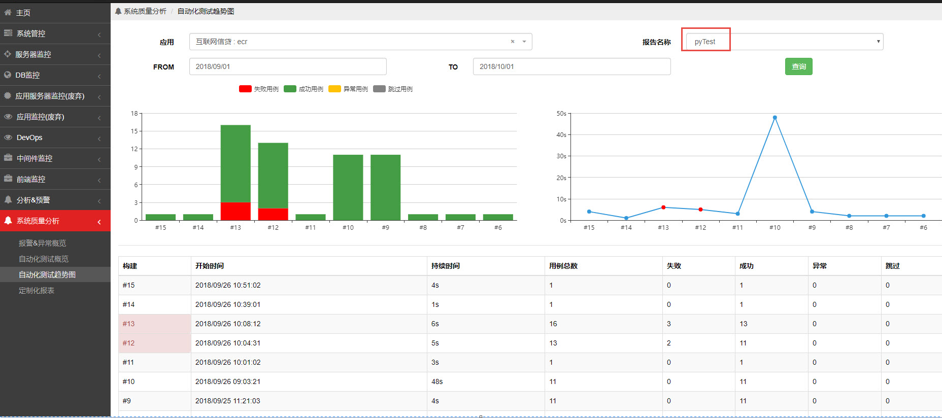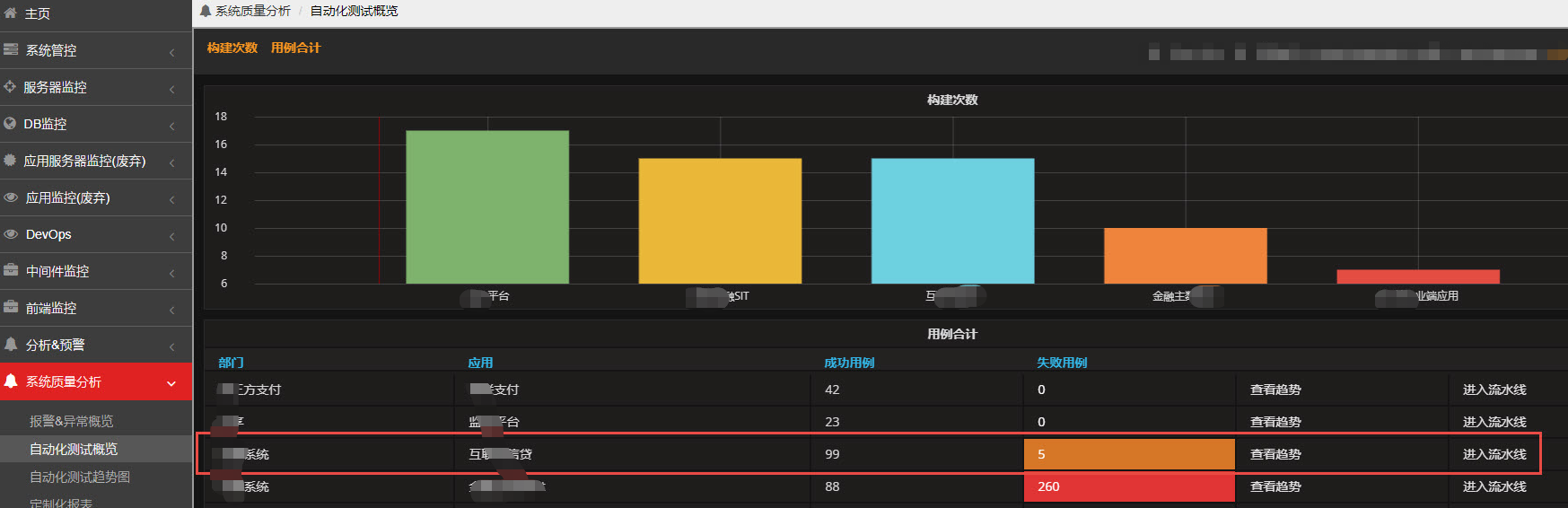 - 选择对应的项目应用,点击查看自动化测试趋势