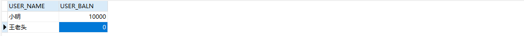再查看数据库,数据库执行一半出现异常终止,小明资金共20000,现在能够看出来 小明明学转出的10000元消失不见了,这里就是每执行一条DML语句,事务会自动提交一次