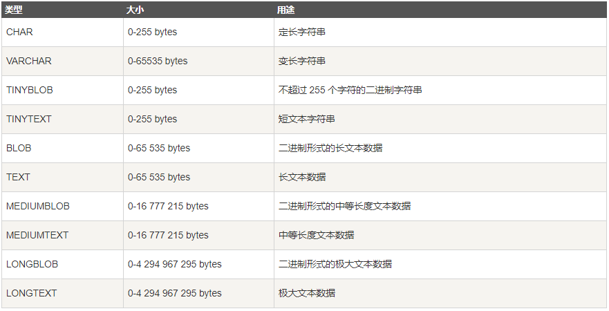 MySQL支持多种类型,大致可以分为三类:数值、日期/时间和字符串(字符)类型。