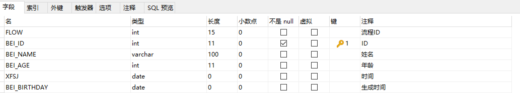 --运行之后,我们发现在BEI_ID面前新增了字段,表示新增成功